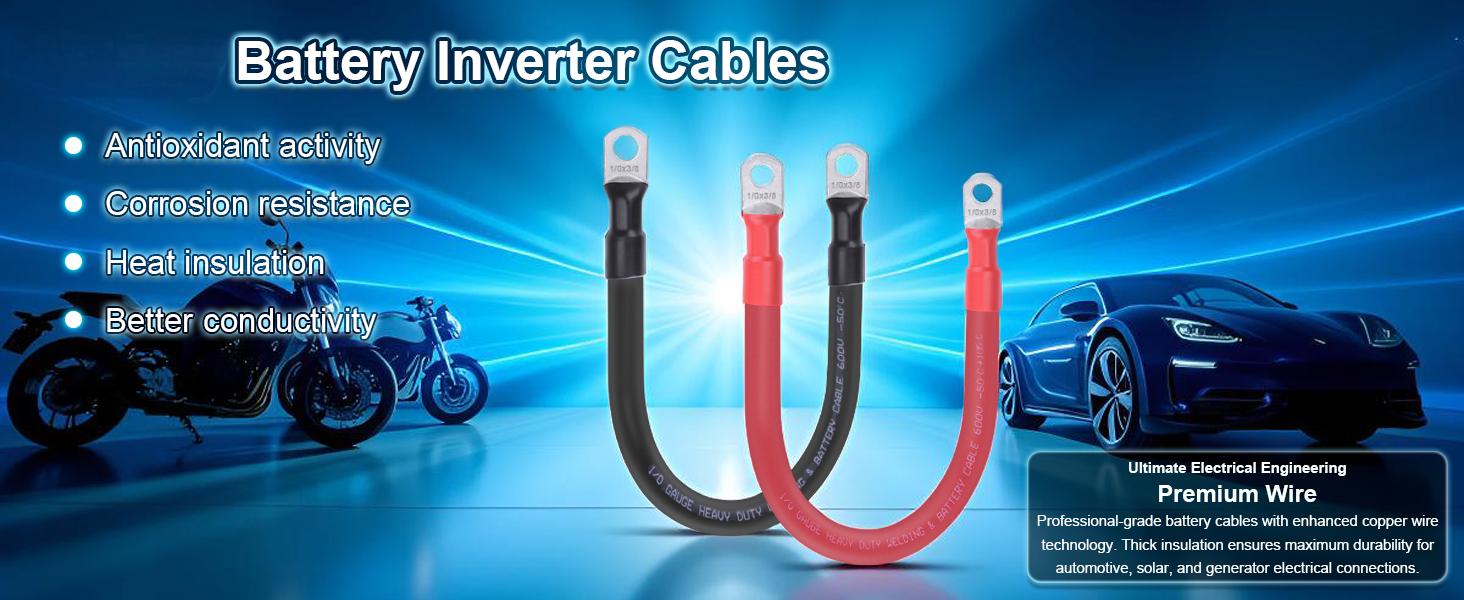 Our Battery Inverter Cables are high-quality pure copper core materials with stronger conductivity, and the outer shell material is EPDM, which can effectively resist corrosion, moisture, fire, and other factors.