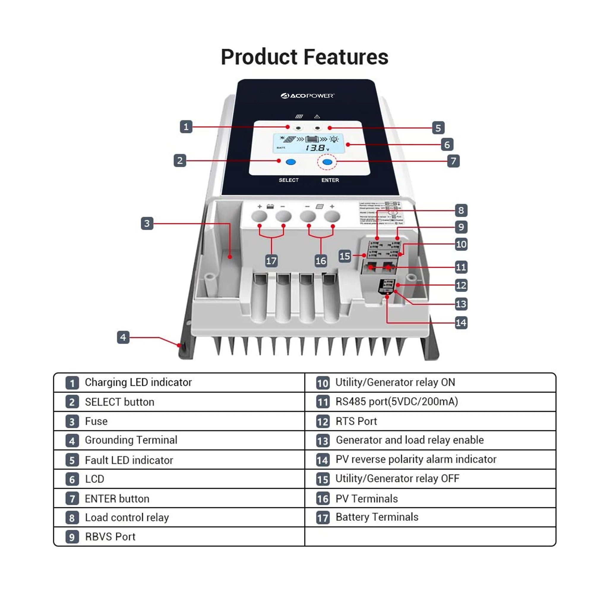 ACOPower 50 Amp MPPT Solar Charge Controller